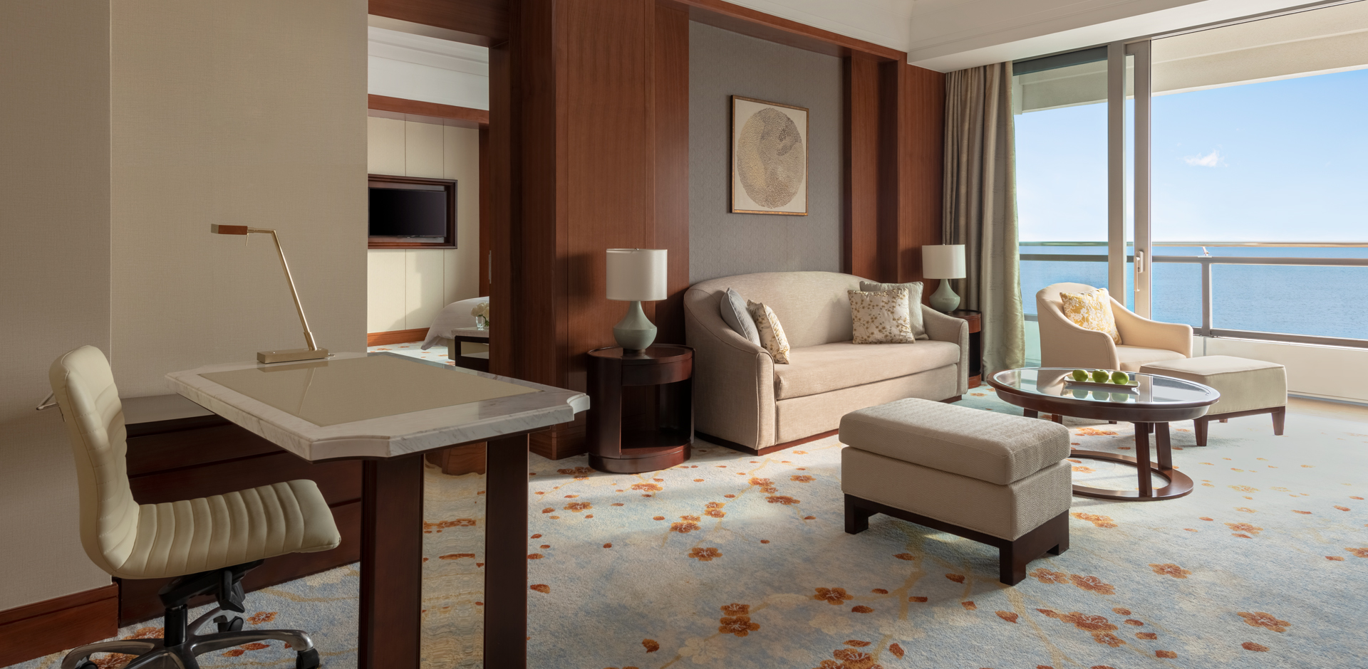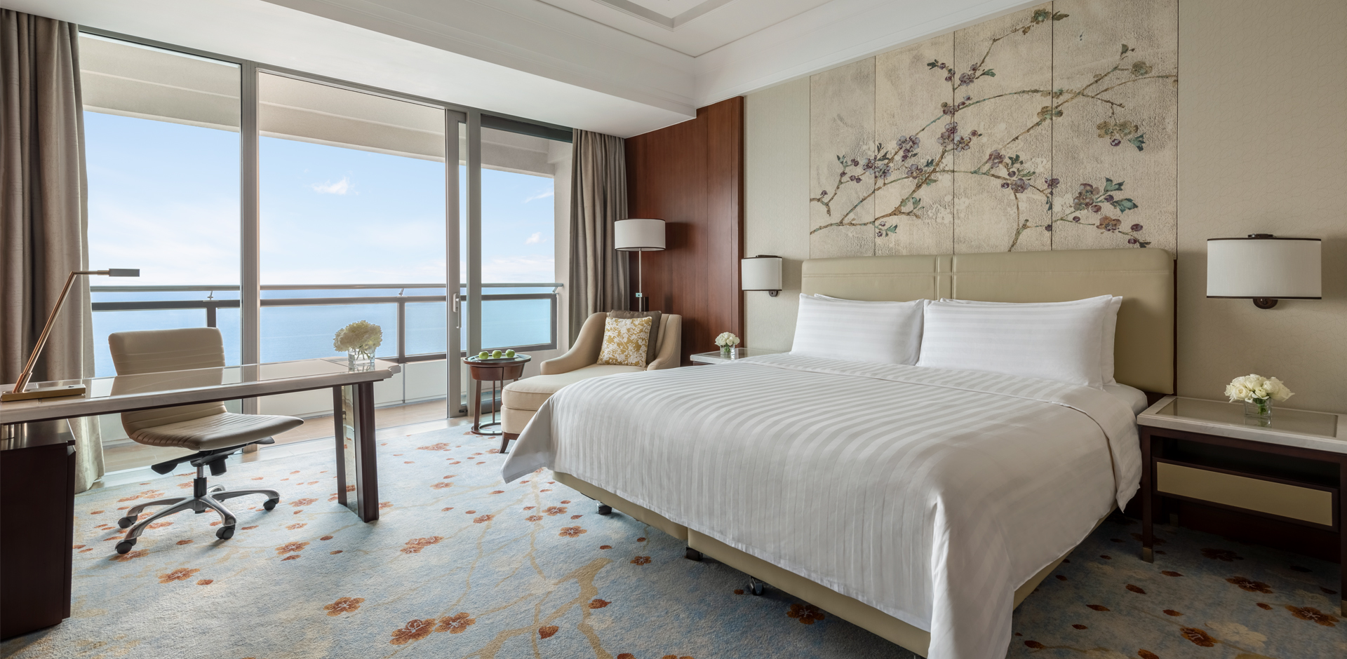 Shangri-La Hotel, Qinhuangdao features 323 guest rooms and suites. The design is elegant and functional, and each room is tastefully furnished in warm and soothing colours reflecting the inspiring ocean scenery. Each features floor-to-ceiling windows that face the picturesque Bohai Sea.