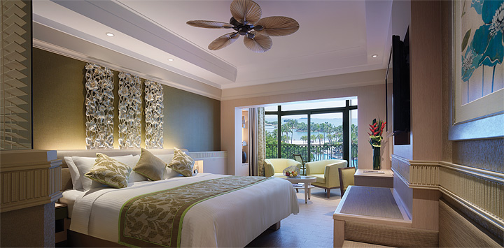 Nestled next to Siloso Beach overlooking the South China Sea, Shangri-La’s