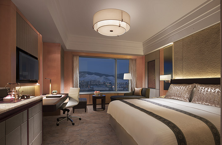 The elegantly appointed guestrooms range from 42 sqm, or 450 sqf, and are the large lead-in rooms in Ulaanbaatar. All guestrooms and suites either overlook the Nairamdal Park to the south or the Great Chinggis Khaan Square and city panorama to the north.