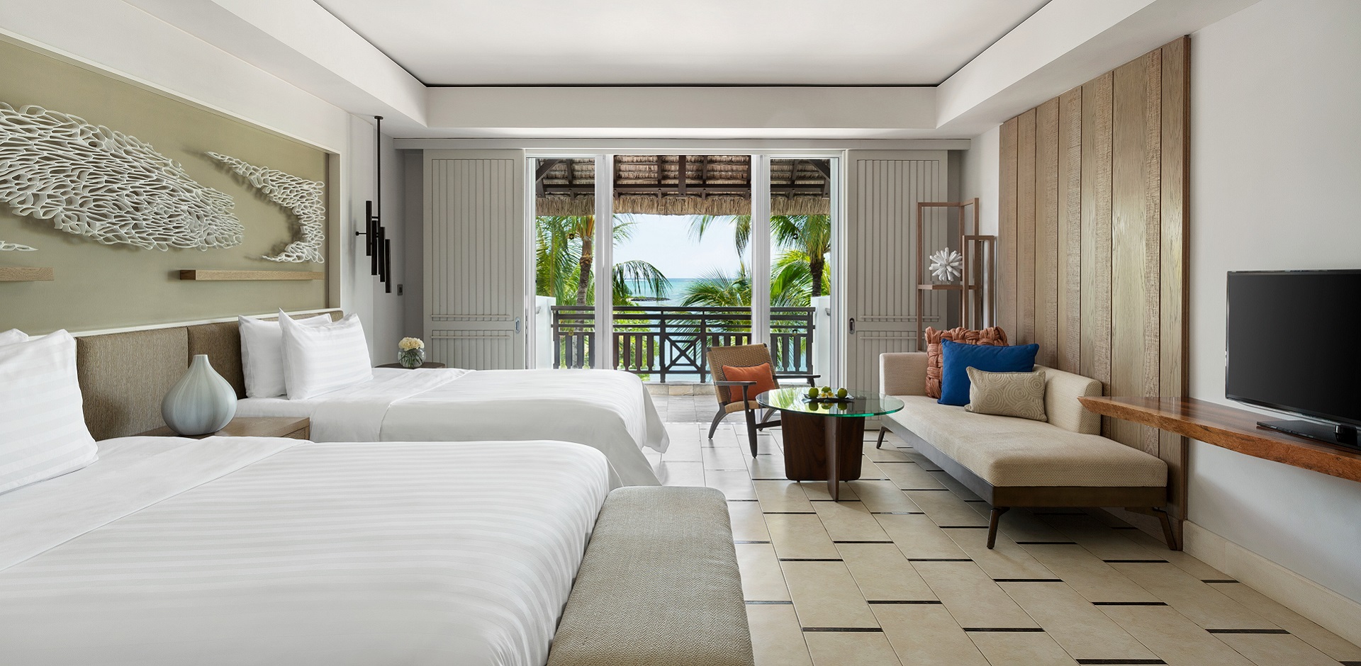 All 200 rooms, suites and three private villas at Shangri-La’s Le Touessrok Resort & Spa, Mauritius unlock a personal island sanctuary for guests, with a contemporary island-chic style complemented by thoughtful touches of local character. All offer uninterrupted views of the sparkling Indian Ocean.