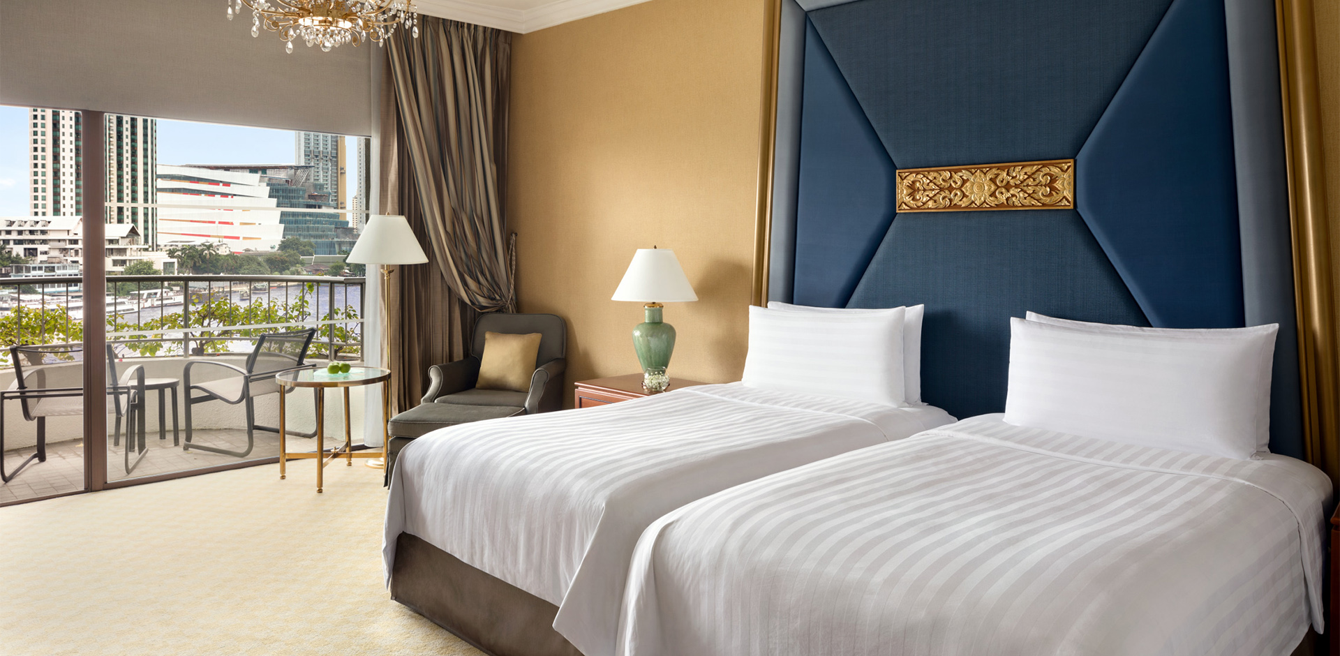 クルンテープウィングリバービュールームにご滞在のお客様は、大理石張りのバスルームやシャワールームが備わる豪華なゲストルームからご覧いただけるリバービューを、クルンテープウィングデラックスバルコニールームにご滞在のお客様は、リバーサイドラウンジとラウンジ特典もお楽しみいただけます。