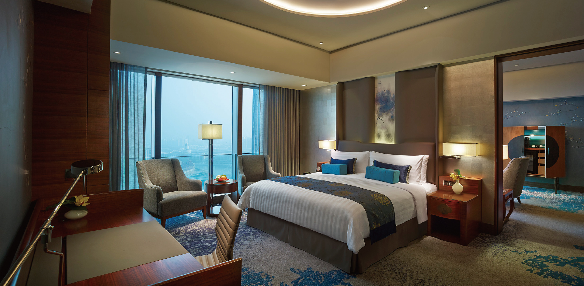 河東区の海河のリバーサイドに建つシャングリ・ラ ホテル 天津は、天津ケリーセンター複合施設内にあります。全39戸のフルサービスアパートメントは、5~7階と18~22階に位置し、ユニット面積は48~144平方メートルと様々なサイズをご用意しております。スタジオアパートメント、1ベッドルームアパートメント、または2ベッドルームアパートメントの中からお選びいただけ、シャングリ・ラ ホテル 天津の優れたサービスや施設をすべてご利用いただけます。